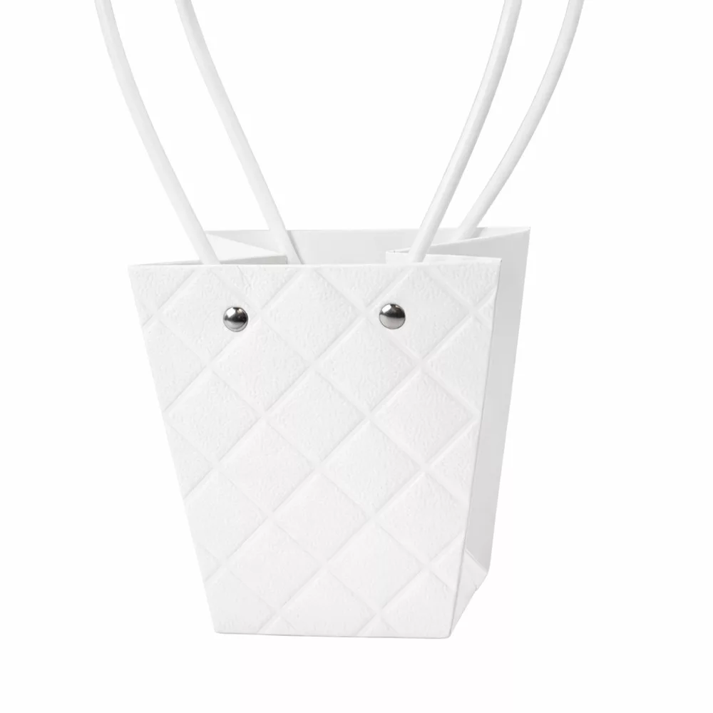 10 buc. Sacoșă cadou cu flori embosate 12(î) x 8(l) x 12.5(a) cm - Alb