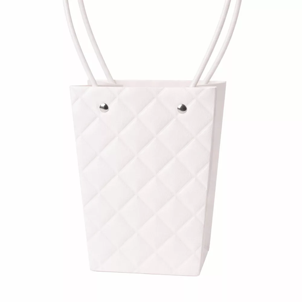 10 buc. Sacoșă cadou cu flori embosate 13(î) x 9.5(l) x 15.5(a) cm - Alb