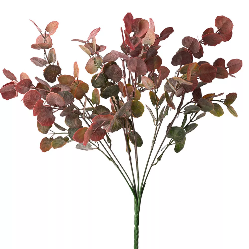 Buchet de eucalipt, 7 ramuri, 34cm - Verde / Bordeaux