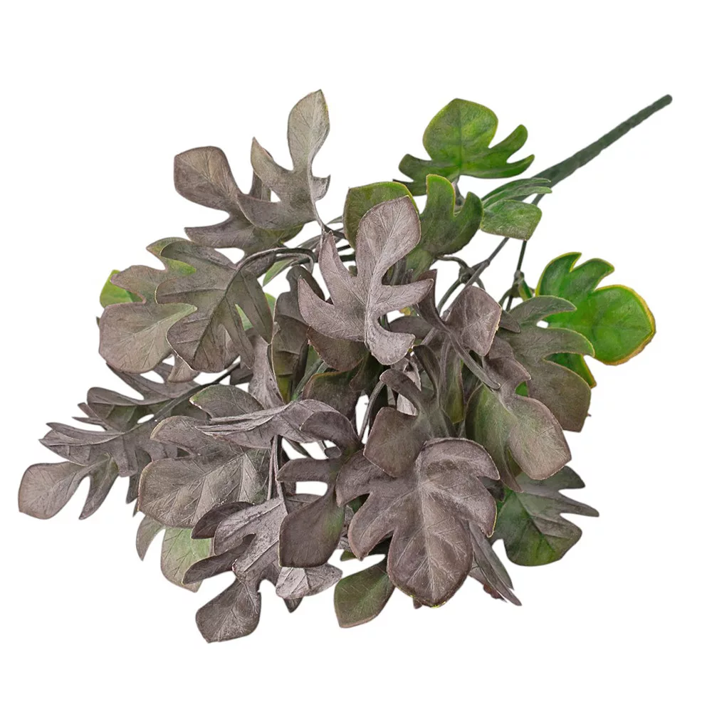 Buchet de monstera artificială, 5 ramuri, 35cm - Verde / Mov