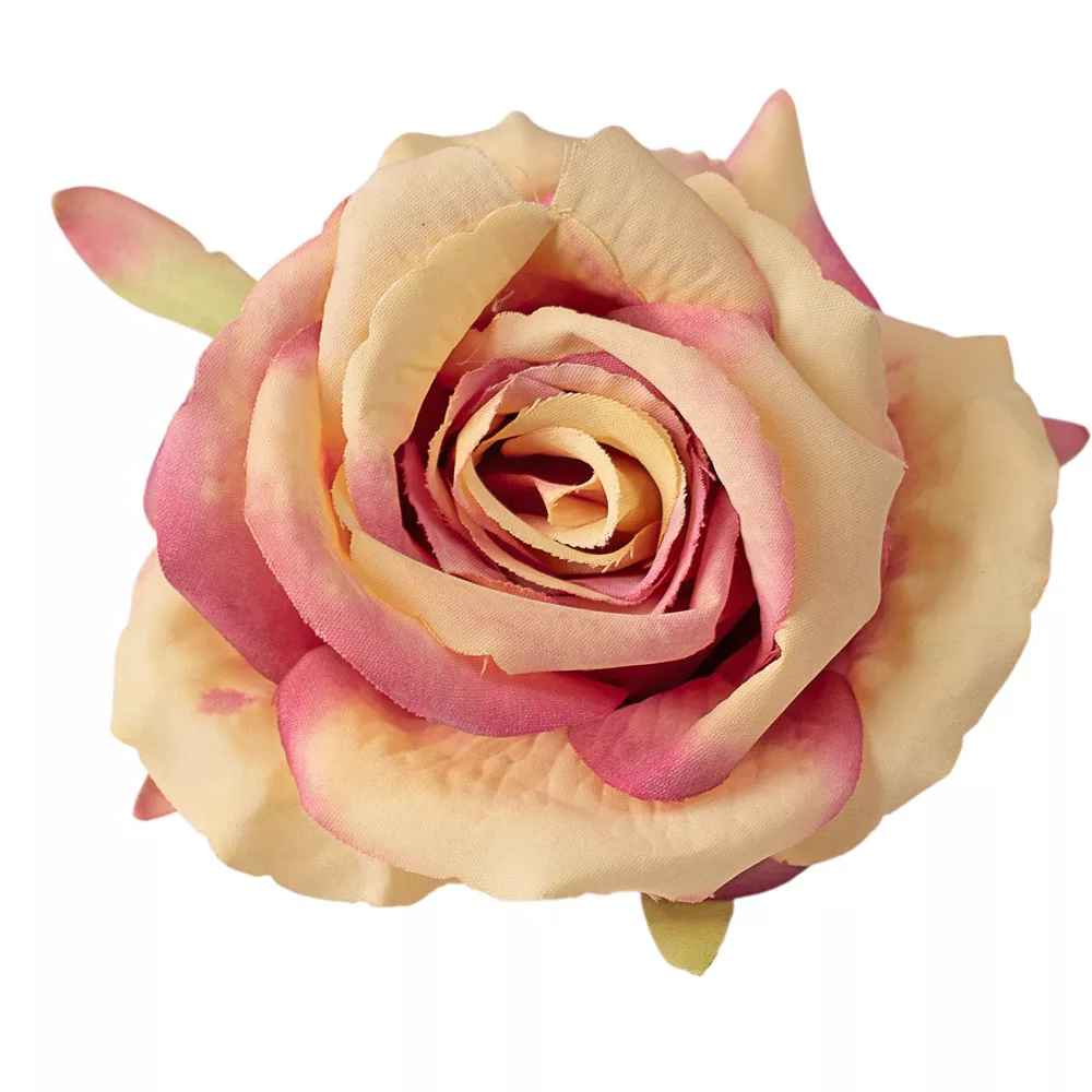 Cap de trandafir din mătase, 9cm - Crem / Roz