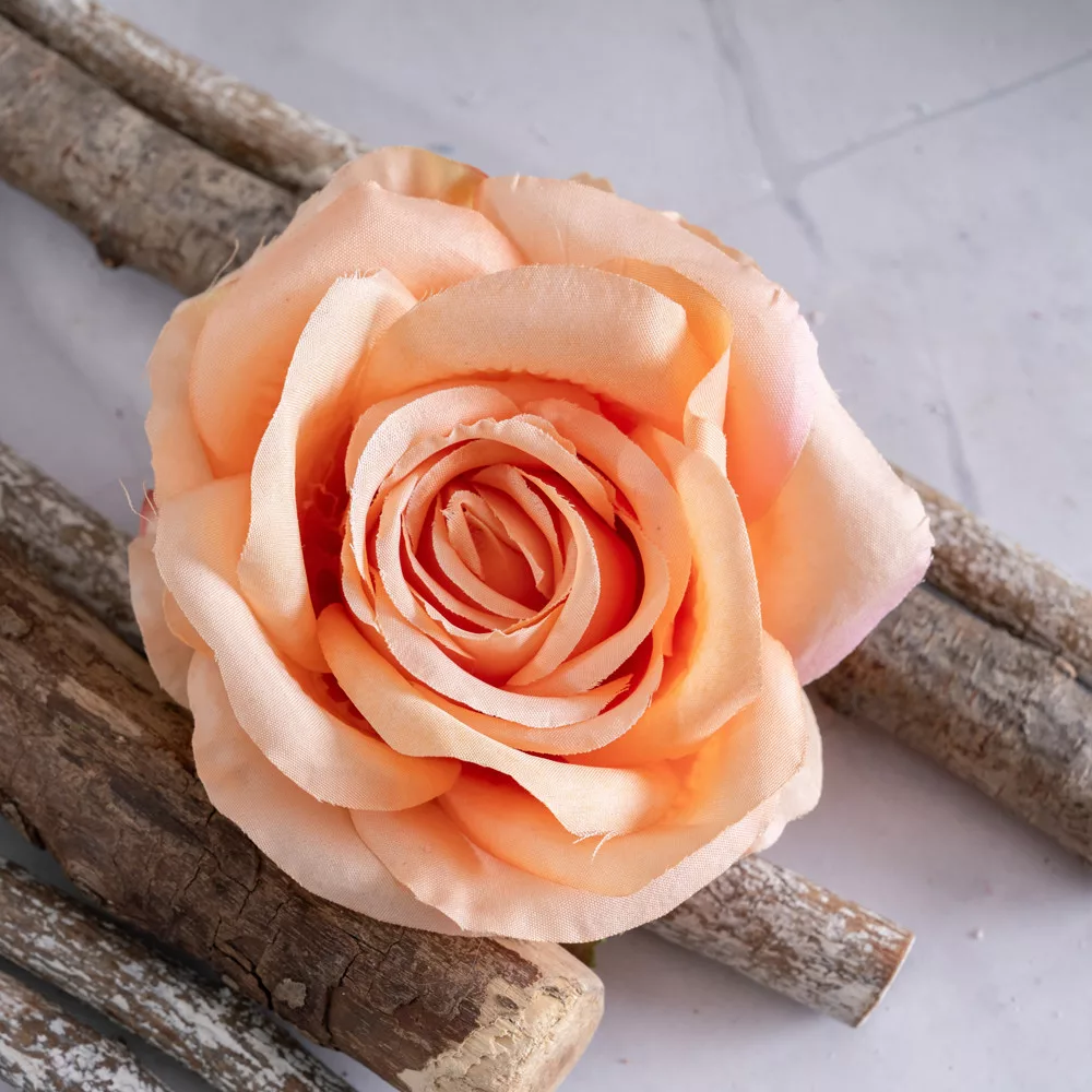 Cap de trandafir artificial, 10cm - Portocaliu pastel