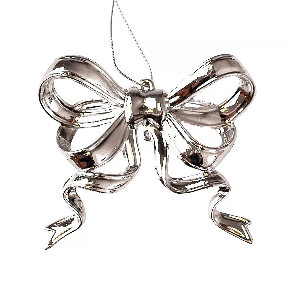 Decor de Crăciun fundiță acrilică 8 x 9cm - Argintiu