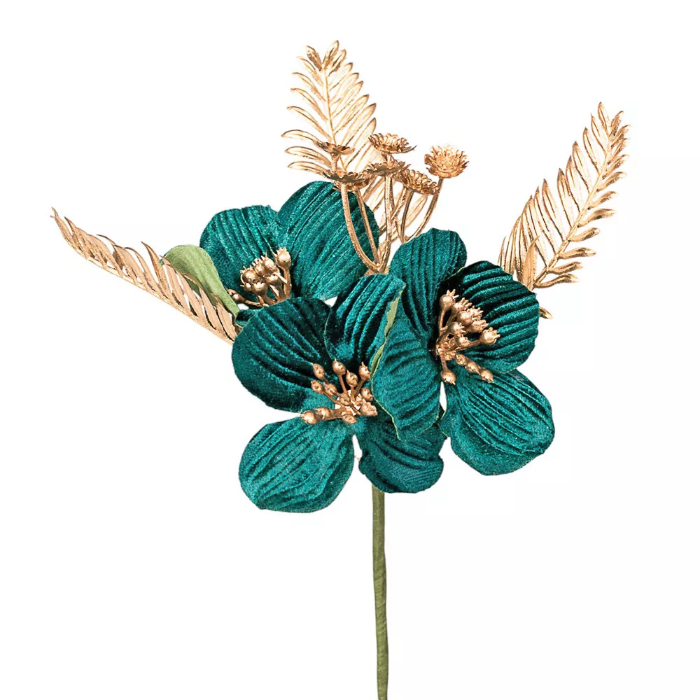 Decor pick cu flori aurii și verzi, 20cm înălțime