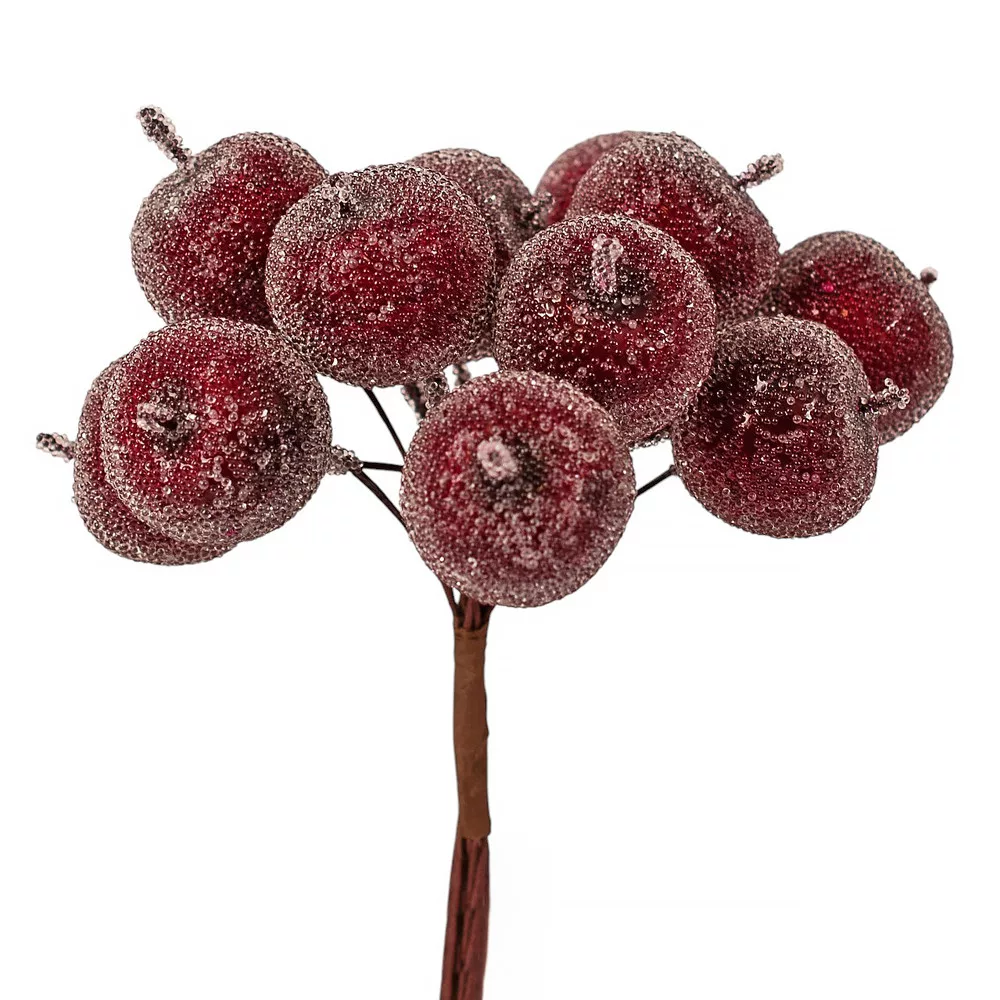 Decor pick cu mere mini zaharisite ⌀ 2.2cm, 12 fire, 10cm înălțime - Bordo