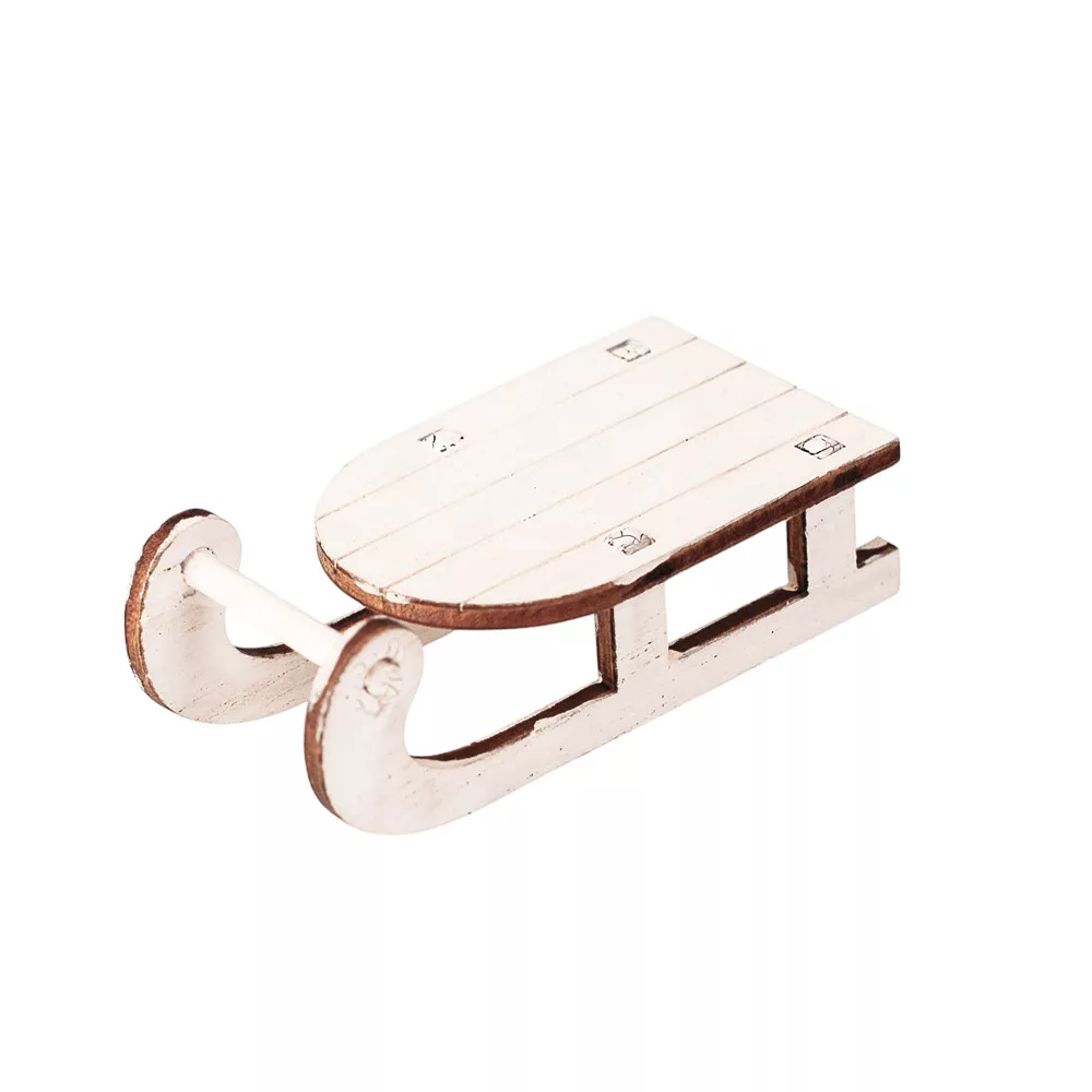 Decorațiune sanie, lemn, 3 x 6cm - Alb