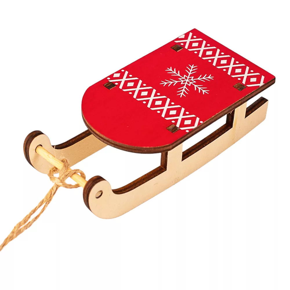 Decorațiune sanie, lemn, 5.5 x 3.5 x 12.5cm - Roșu