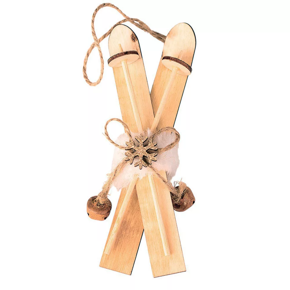 Decorațiune schiuri, lemn, 14.5 x 5cm - Natur