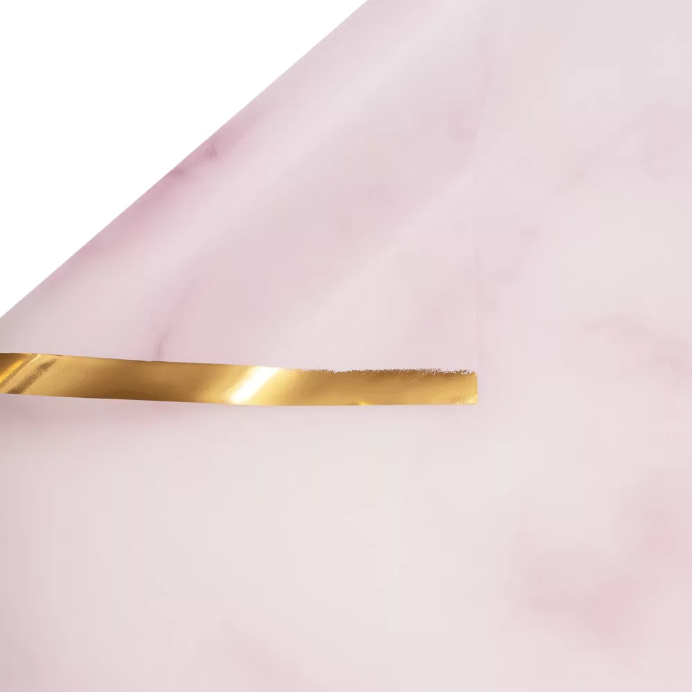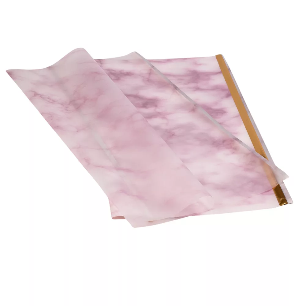 Foaie folie model marmură cu margine aurie 57 x 57cm, 20buc. - Roz deschis