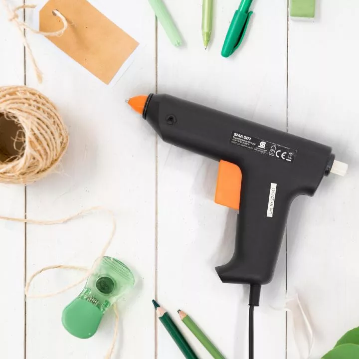 1. Așază o hârtie sau o tavă sub pistolul de lipit pentru a colecta eventualele picături de adeziv.