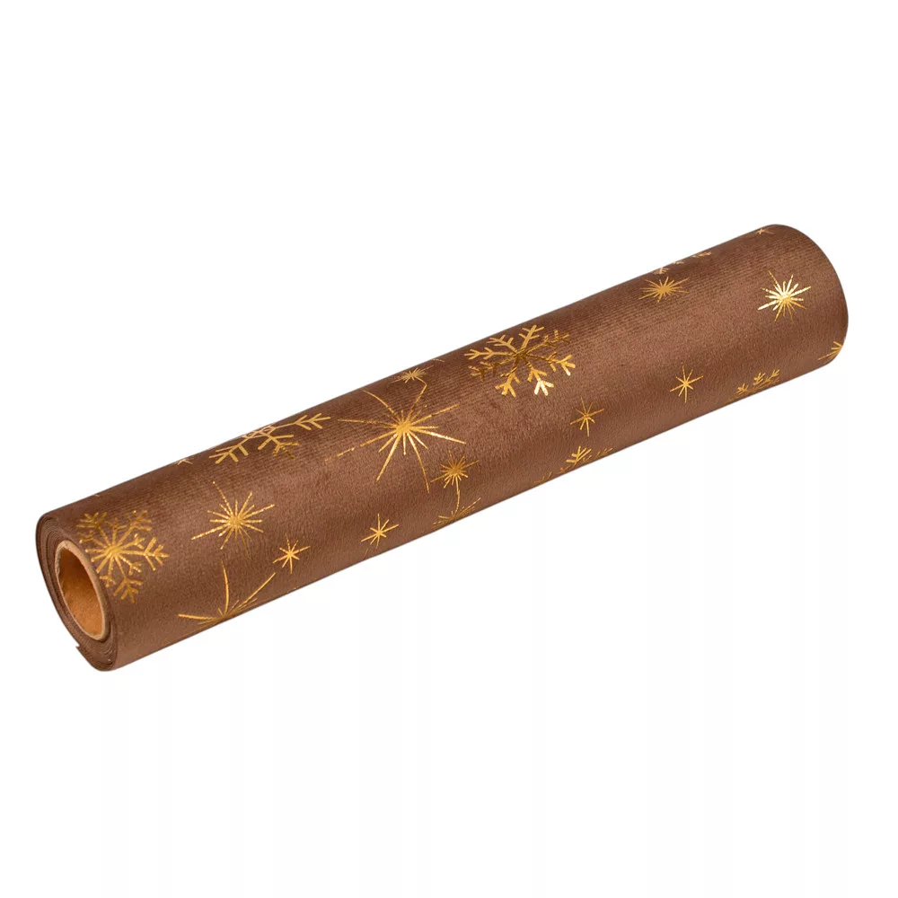 Material decorativ de Crăciun din catifea, alergător de masă, 28cm x 2.7m - Maro