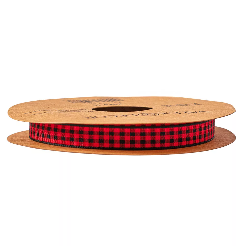 Panglică cu carouri 10mm x 10m - Roșu/Negru