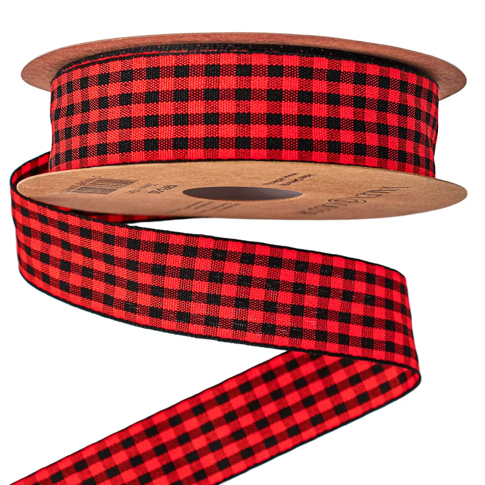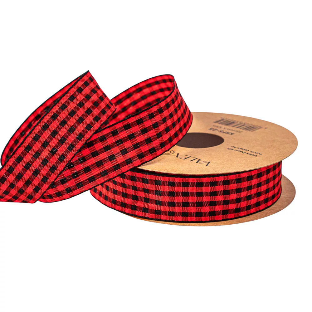 Panglică cu carouri 25mm x 10m - Roșu/Negru