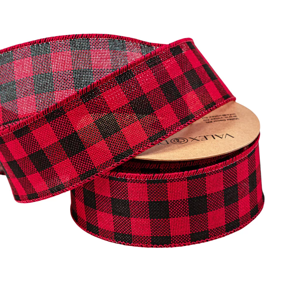 Panglică cu carouri cu margine sârmă 45mm x 10m - Roșu/Negru