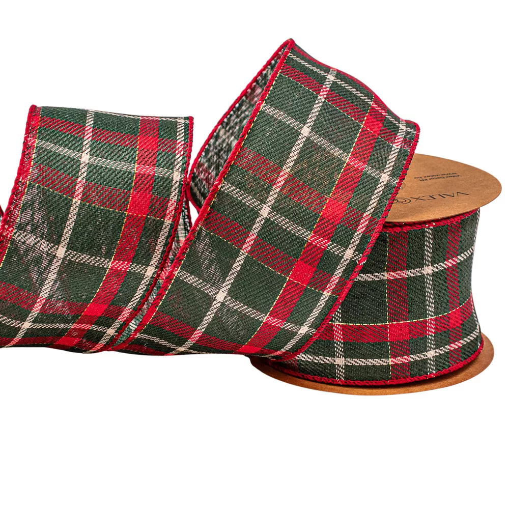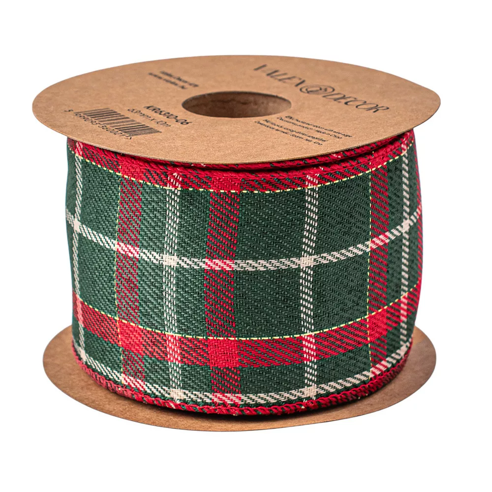 Panglică de Crăciun cu carouri scoțiene și margine sârmă 63mm x 10m