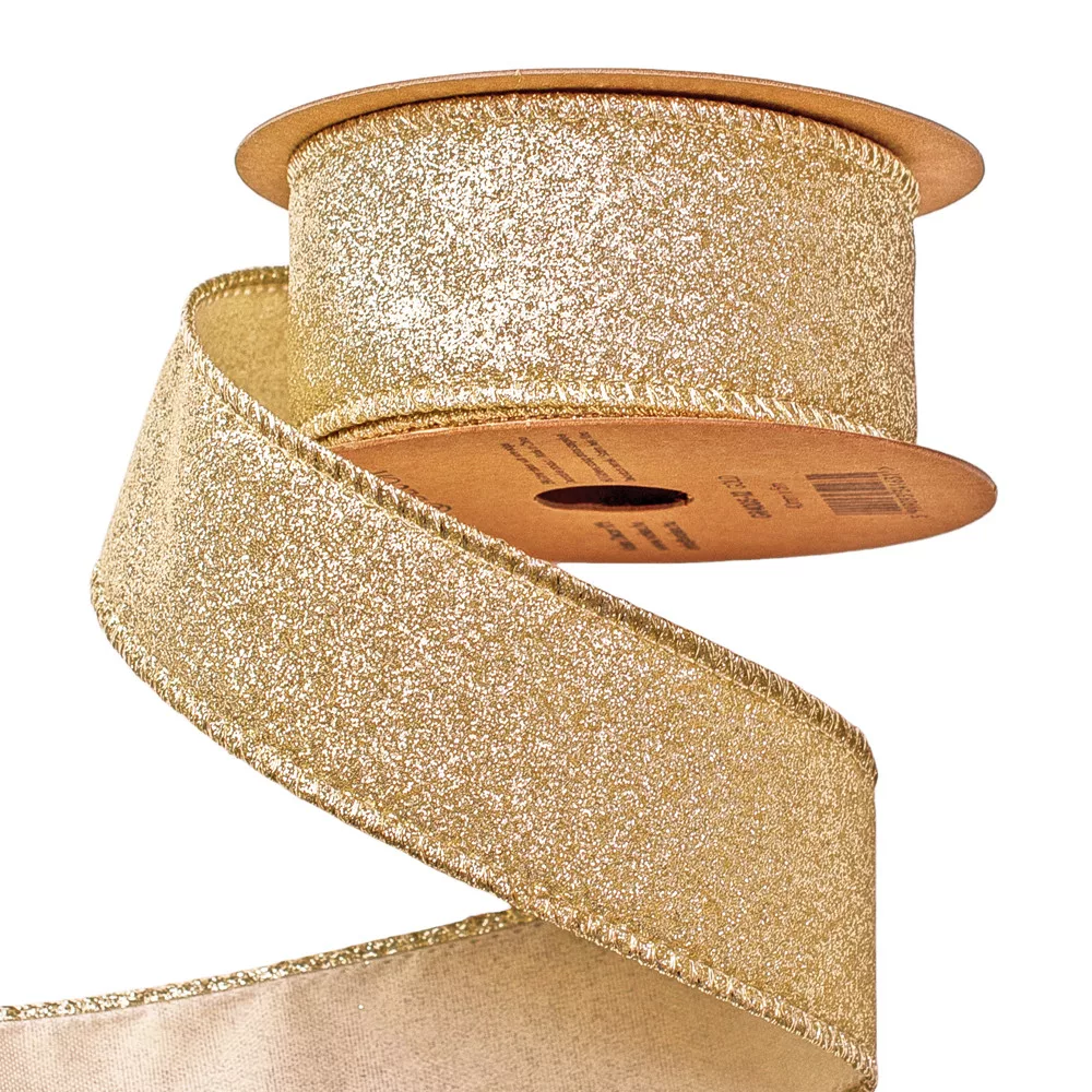 Panglică de Crăciun cu glitter și margine cu sârmă 40mm x 5m - Auriu