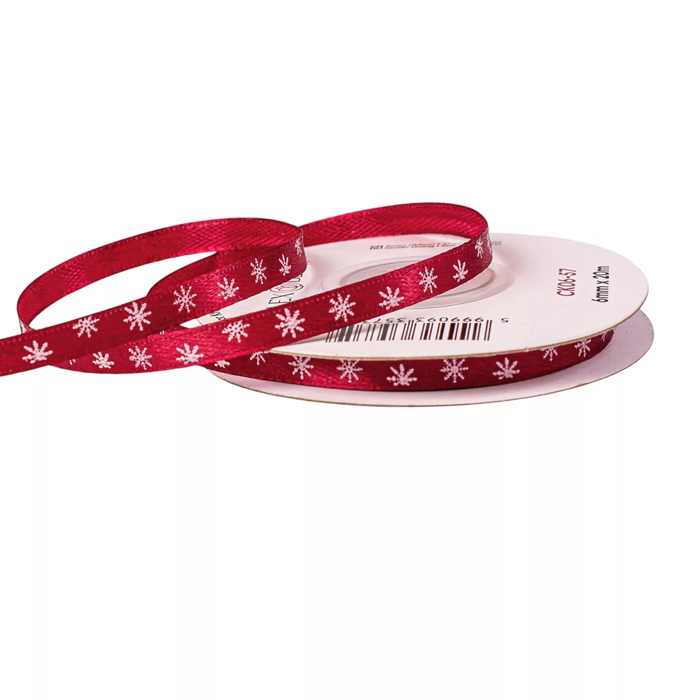 Panglică de satin cu fulgi de zăpadă 6mm x 20m - Bordo