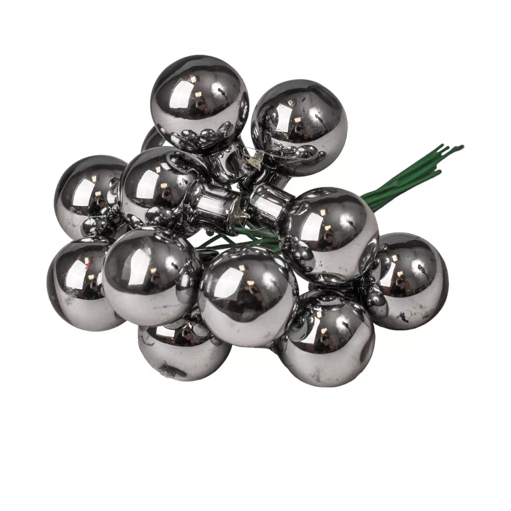Pick glob de sticlă, lucios gri, 2cm, set de 12 bucăți