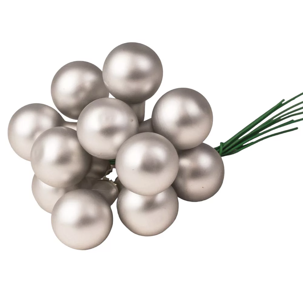 Pick glob de sticlă, mat argintiu, 2cm, set de 12 bucăți