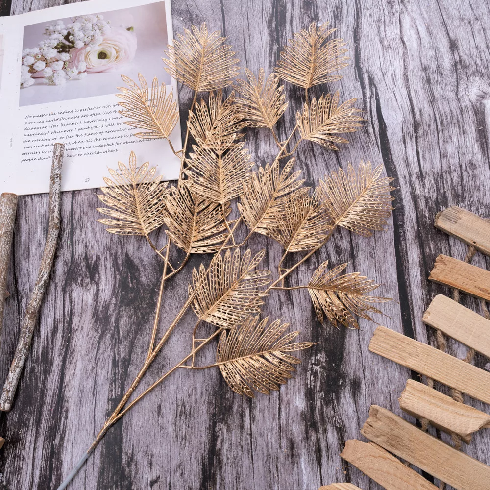 Ramură cu 3 frunze de magnolie, 67cm - Auriu