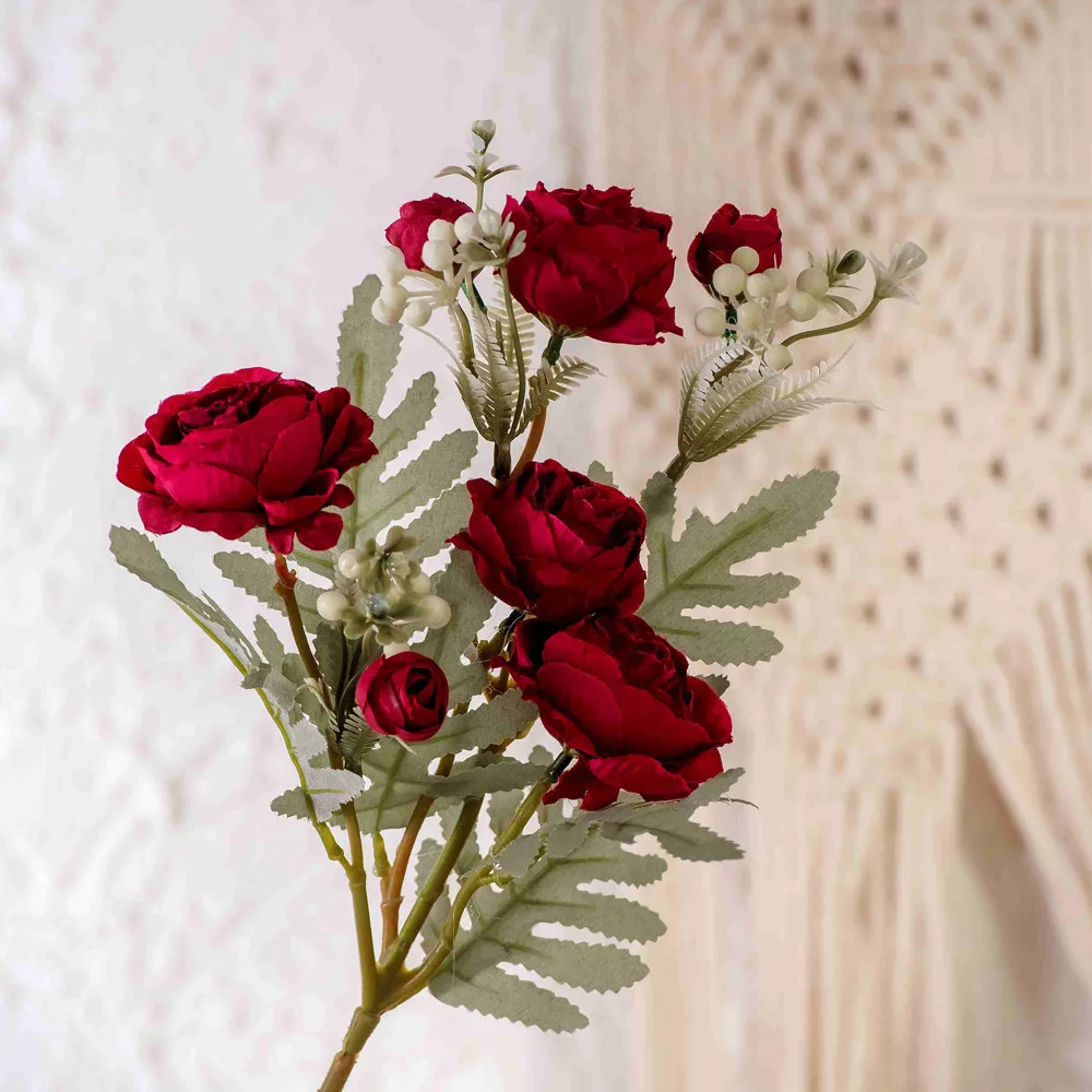 Ramură de trandafir pudrat, 56cm - Roșu