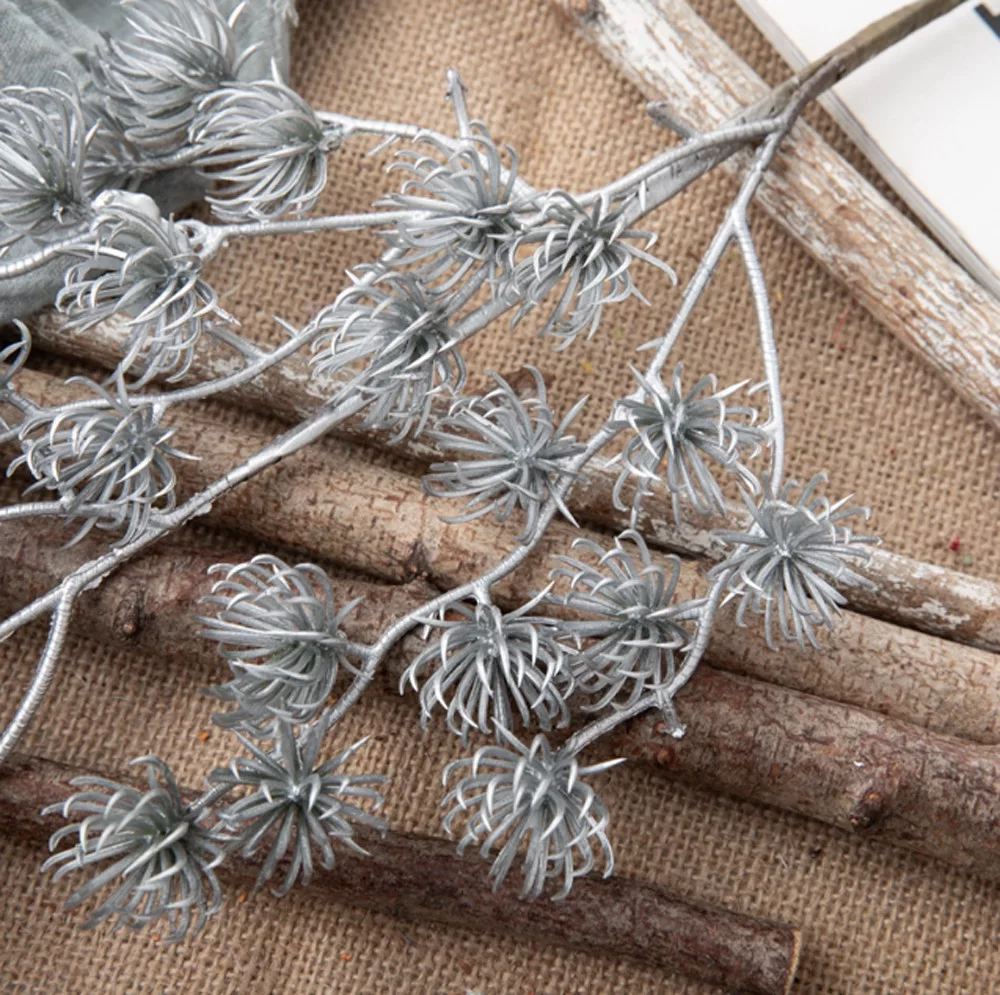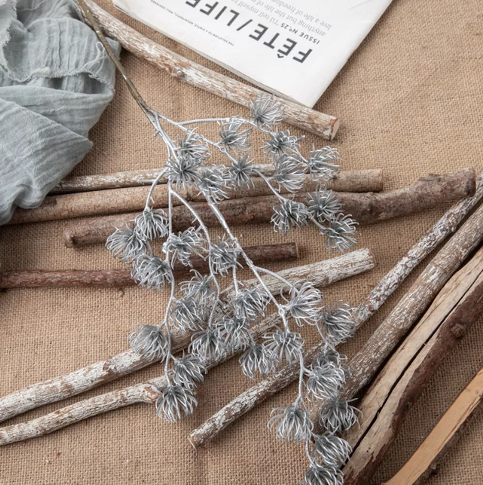 Ramură decorativă metalizată, 44cm - Argintiu
