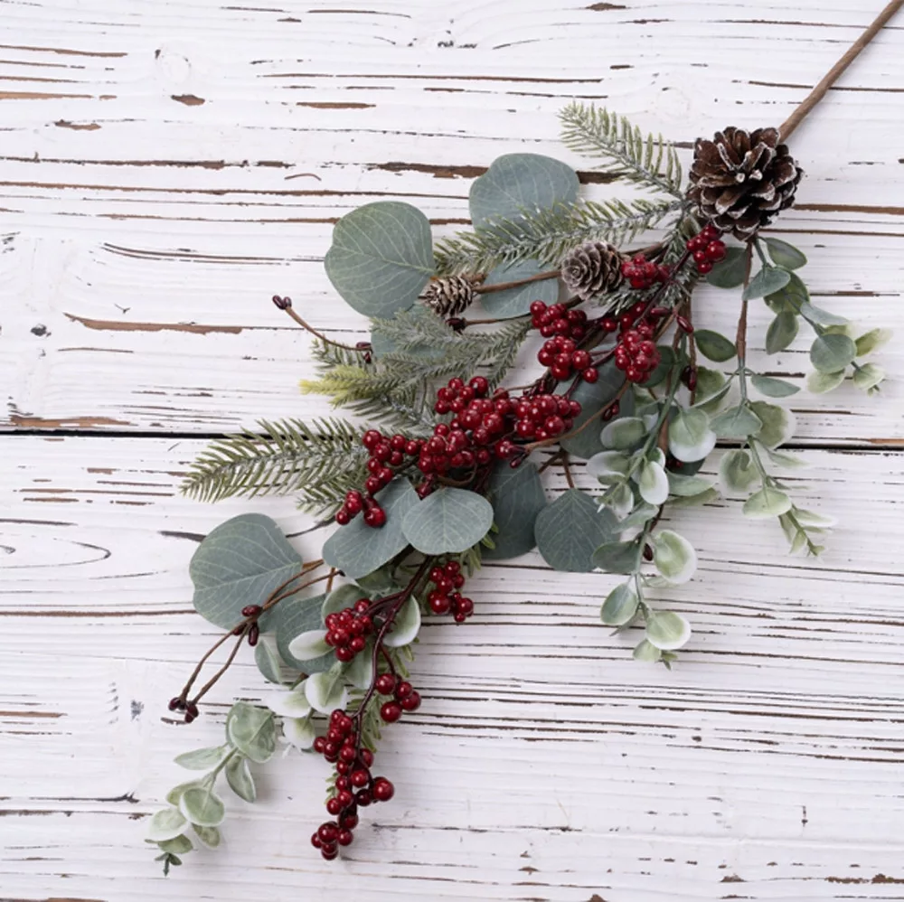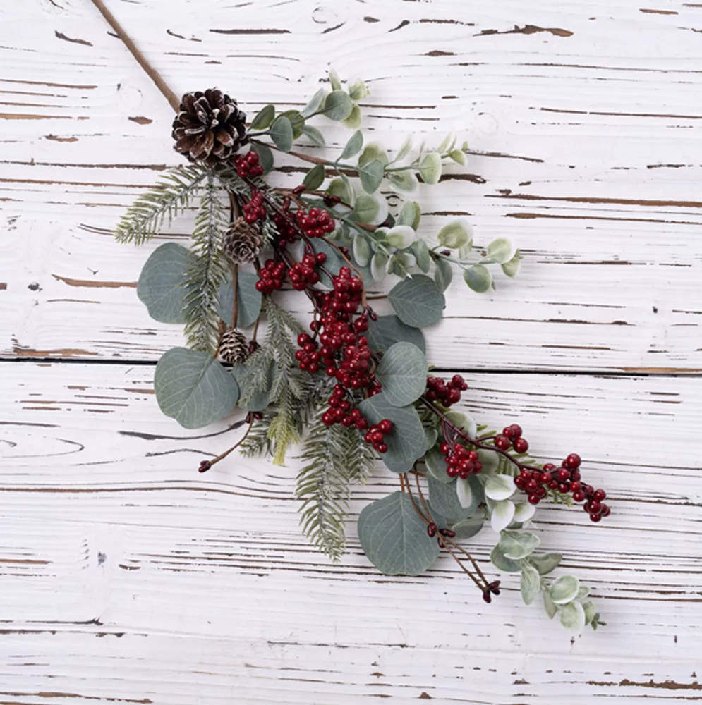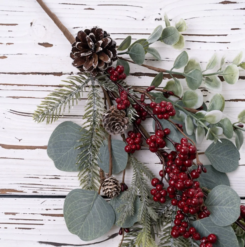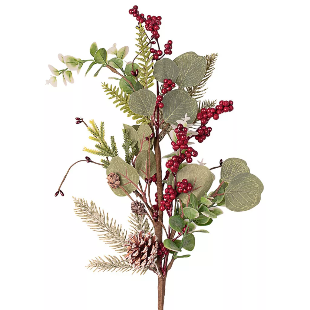 Ramură de iarnă cu brad, eucalipt, bobițe și con, 67cm