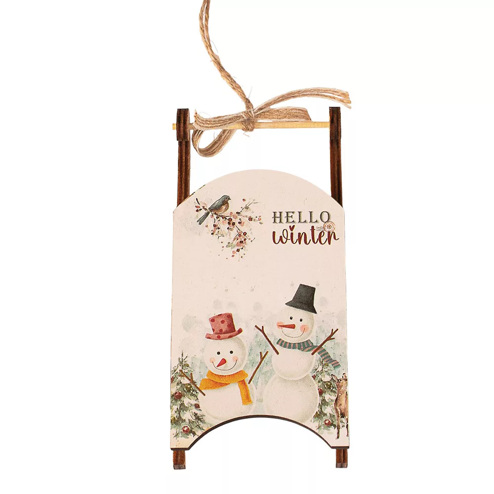 Sanie ornament de Crăciun, 15 x 7 x 3cm, pentru utilizare creativă sau brad de Crăciun - Om de zăpadă
