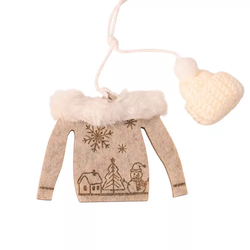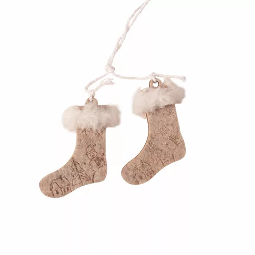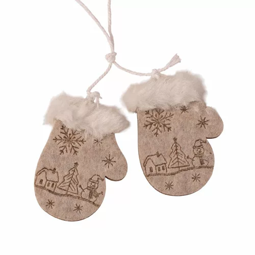 Set decorațiuni Crăciun, 6-10cm, cu agățătoare, fetru și lemn - Gri