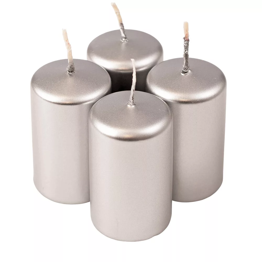 Set lumânări cilindru de Advent 7 x 4cm - Argintiu metalic