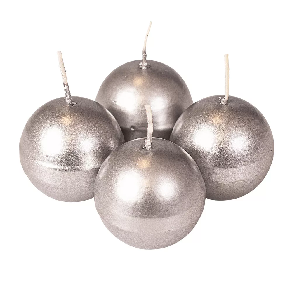 Set lumânări de Advent sferice 5cm - Argintiu metalic
