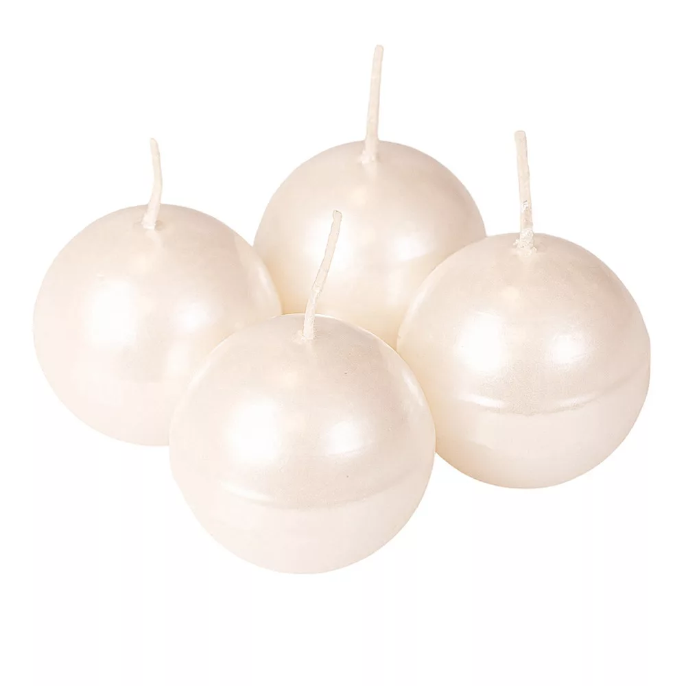 Set lumânări de Advent sferice 5cm - Perlat alb sidefat