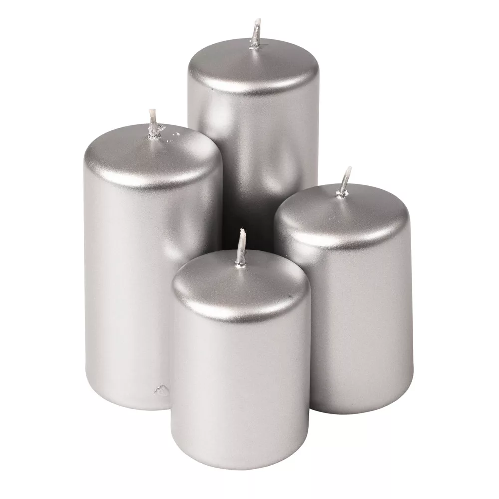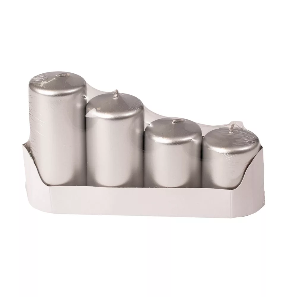 Set lumânări cilindru advent scară, Ø50 x 70/80/100/120mm - Argintiu metalizat