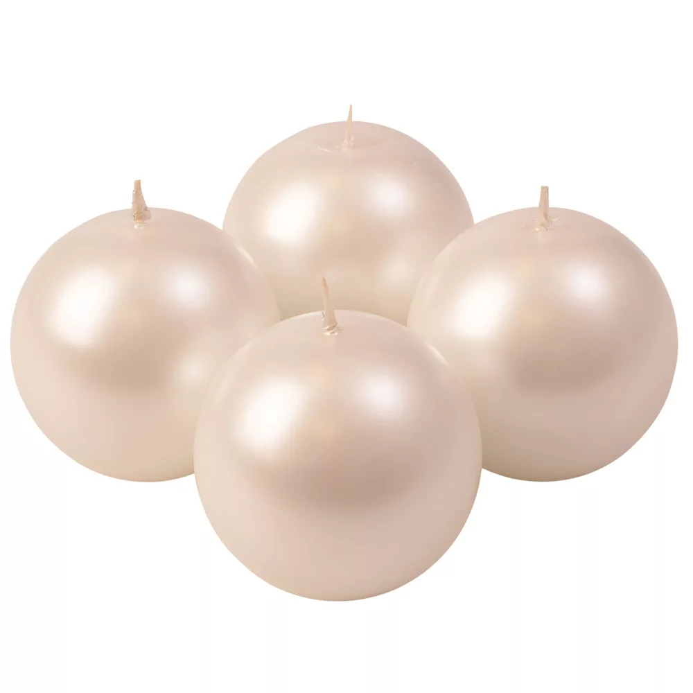 Set lumânări glob advent 8cm - Alb sidefat metalizat