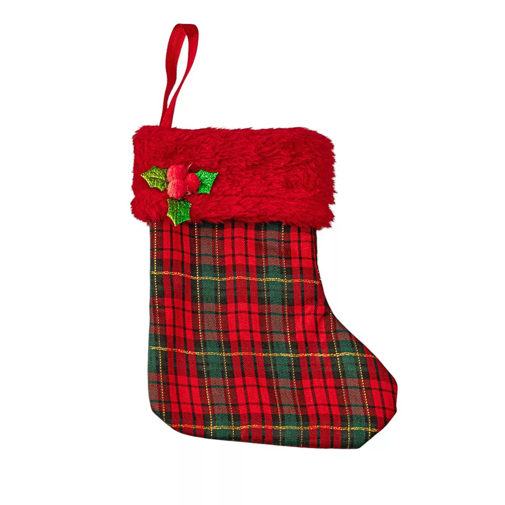 Șosetă de Crăciun cu carouri scoțiene 8 x 14cm