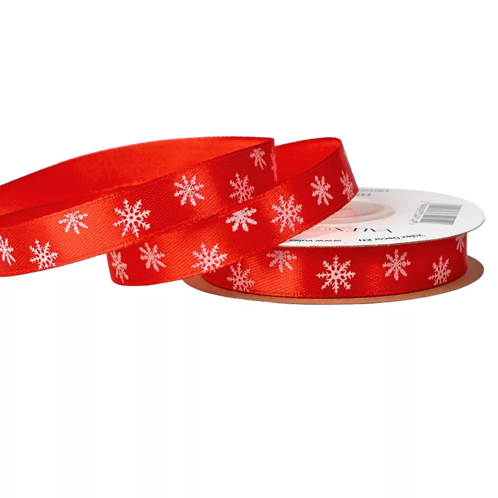 Panglică satinată de Crăciun cu fulgi de zăpadă 12mm x 20m - Roșu