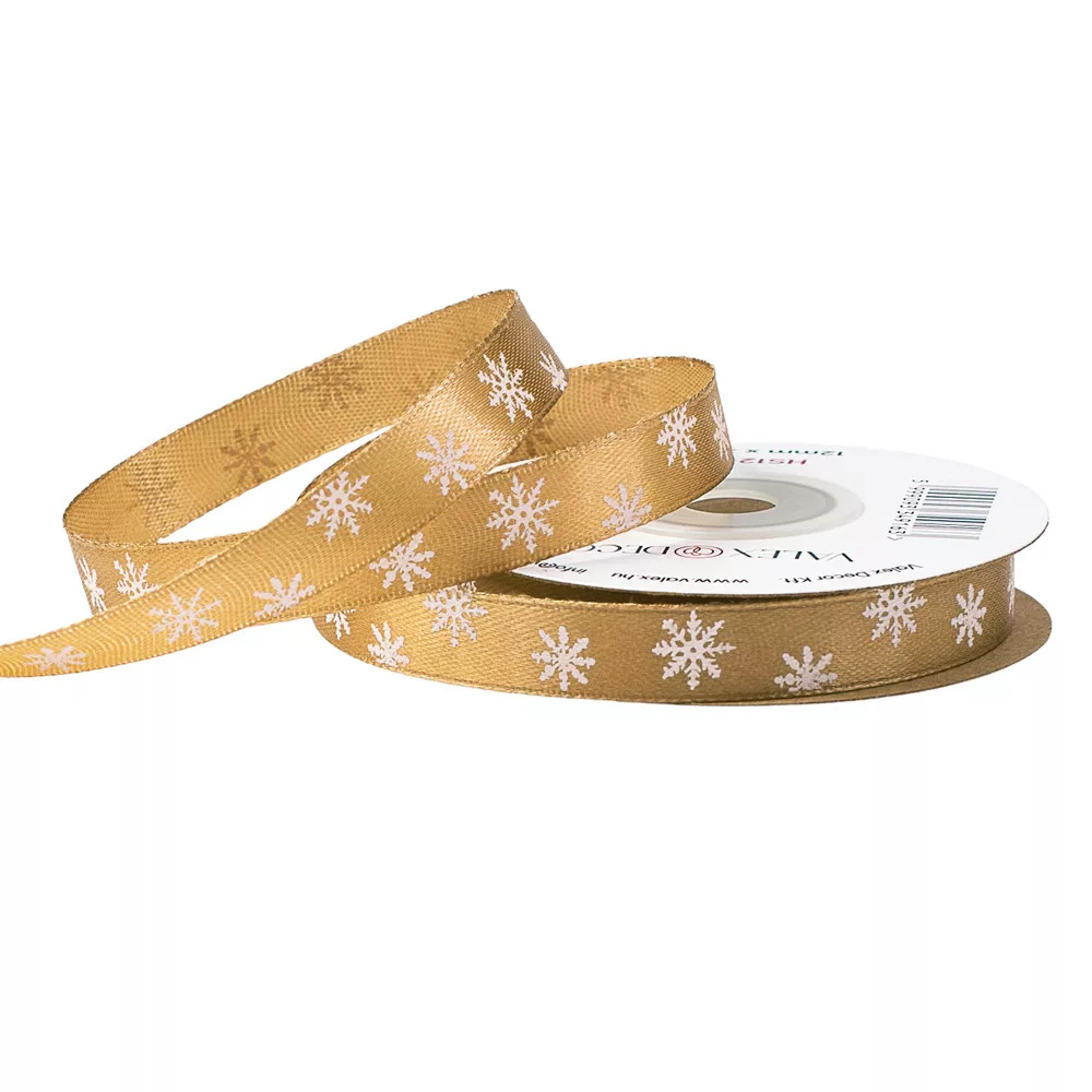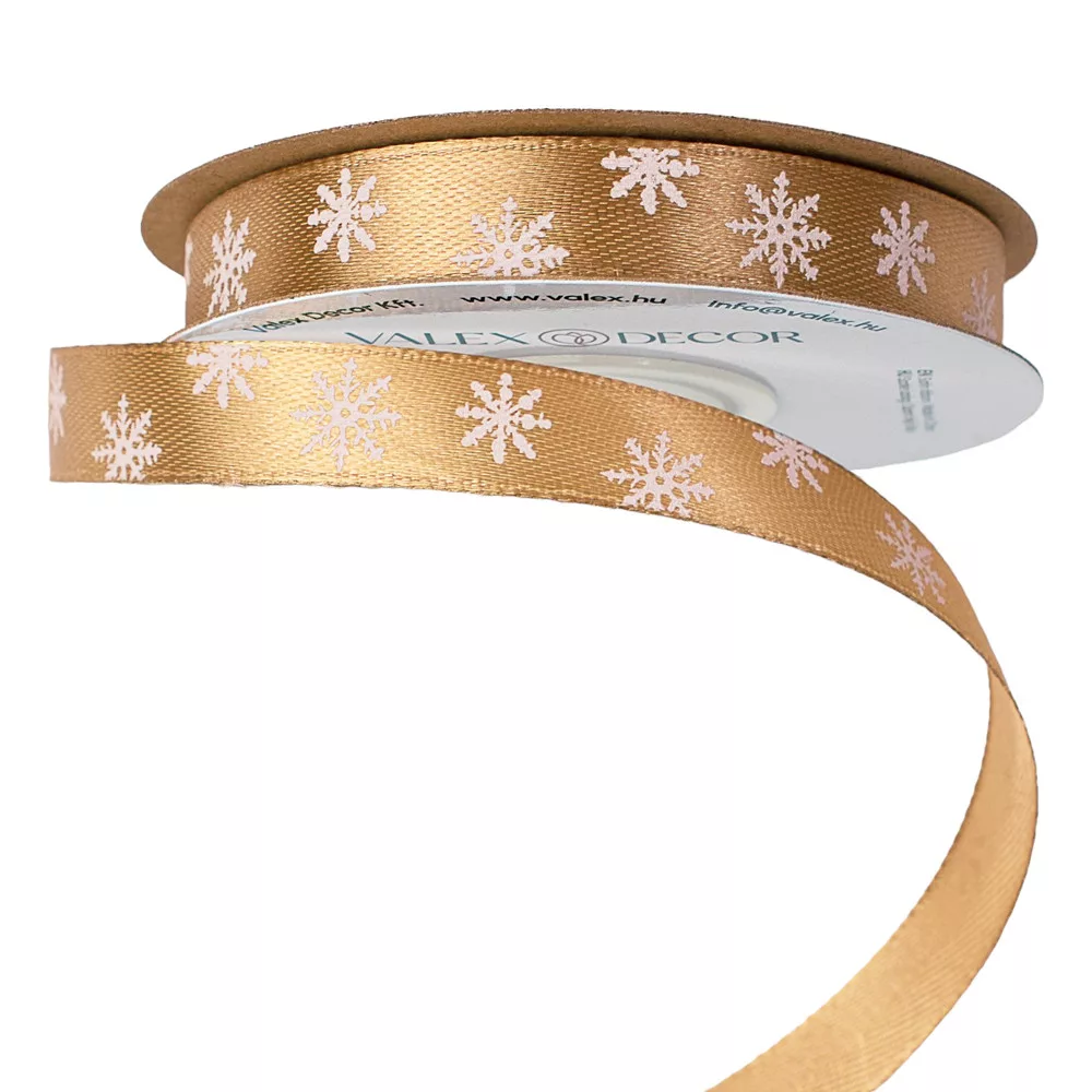 Panglică satinată de Crăciun cu fulgi de zăpadă 12mm x 20m - Maro auriu