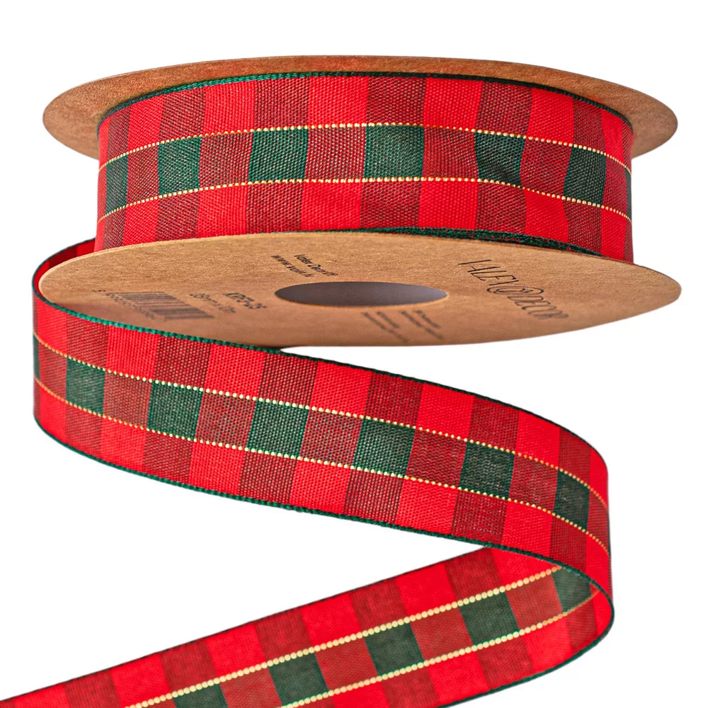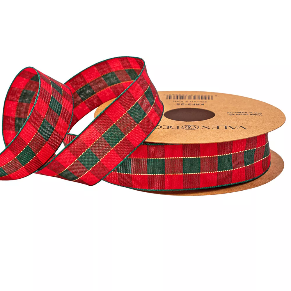 Panglică de Crăciun cu carouri scoțiene 25mm x 10m
